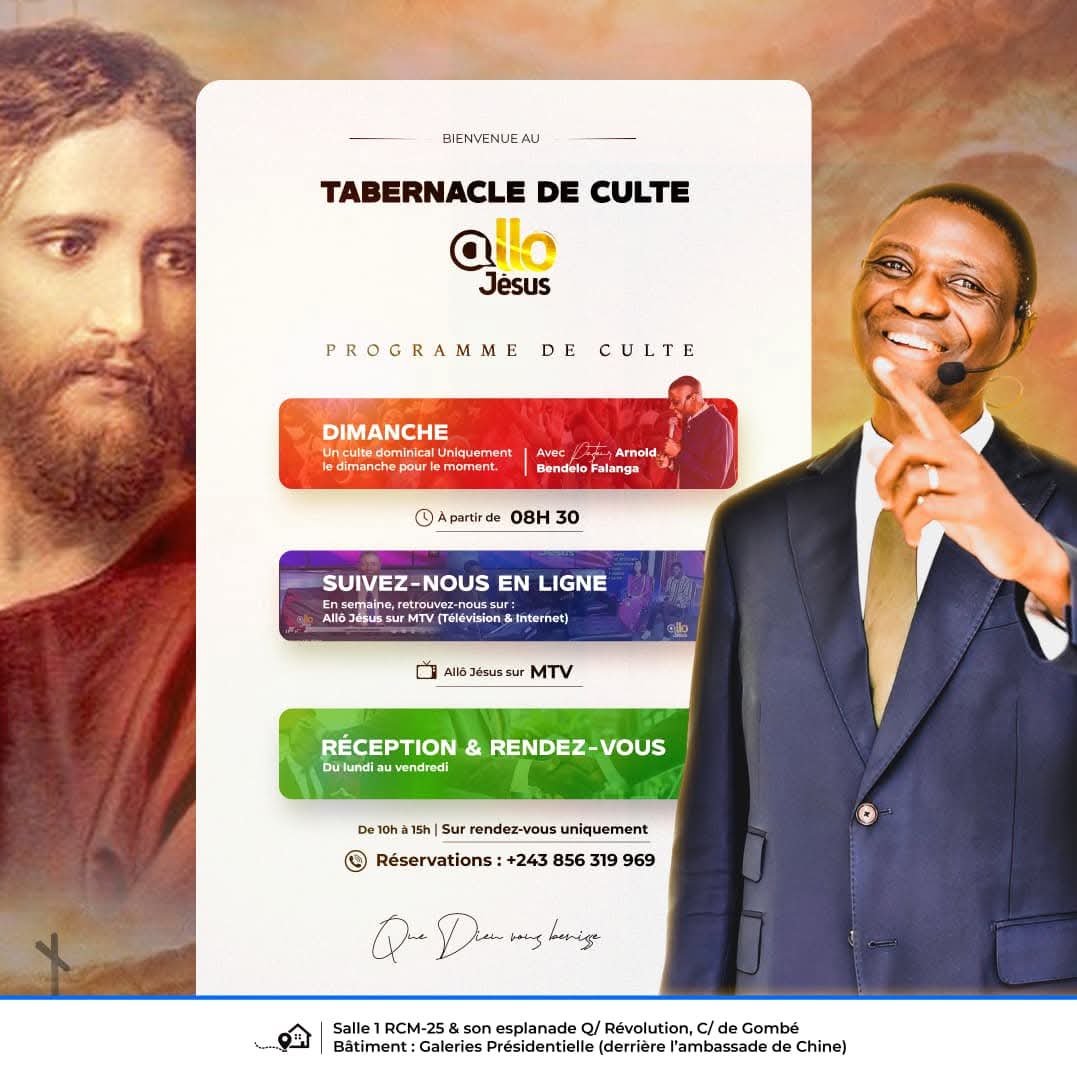 Un culte dominical Unique avec Pasteur Arnold Bendelo Falanga avant Midi de 08h30 à …